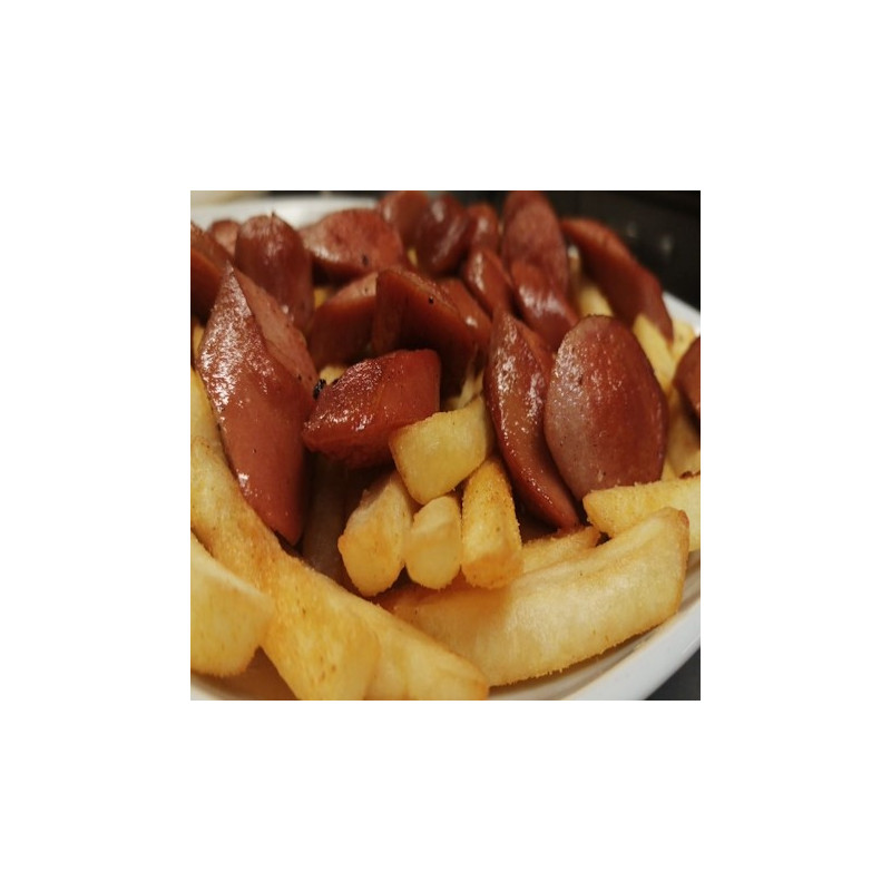 Pariloitua makkaraa sekä ranskalaisia.